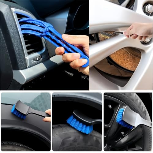 13 Pieces Car Cleaning Set: This car detailing set includes 1 wheel brush, 1 duster brush, 1 car wash mitt, 2 cleaning cloths, 1 dusting brush, 1 wire brush, 5 different car detailing brushes, 1 air conditioner vent brush.