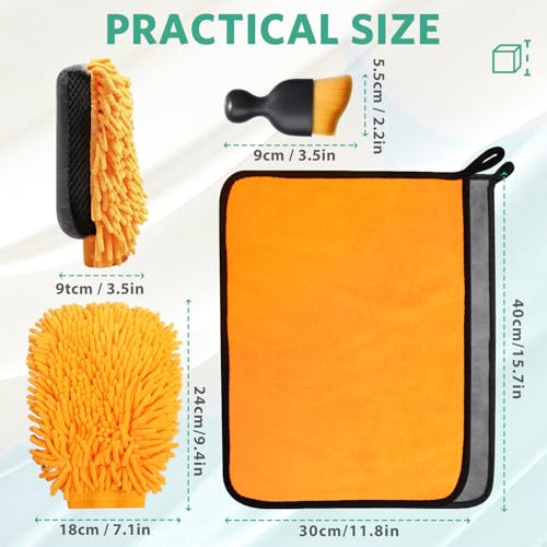 [No Risk] – You will get 2 x car wash mitts, 3 x microfibre cloths, 2 x car interior detailing brushes. All of the parts are made to last. Neat workmanship on the mitts and towels, machine washable. They retain their softness and absorbency after repeated washes. You’re covered by the best after-sale customer service, please do not hesitate to contact us with any questions you may have, we are here for support and advice!