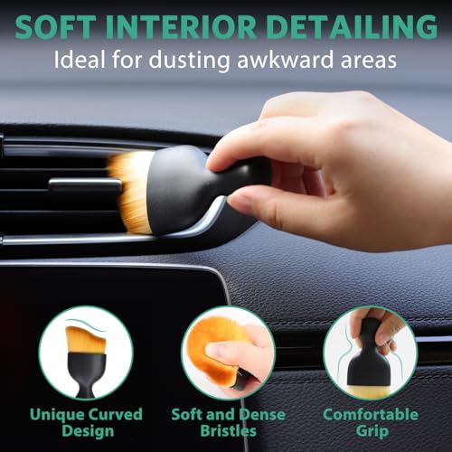 [Ultra-Soft Car Interior Dusting Brushes] – The ultra-soft nanofibre bristles of high density do a good job catching dust and crumbs. The unique curved design of the long and short bristles allows it to penetrate deep into the air outlet to remove hidden dust. The ergonomic handle ensures comfortable grip. A perfect car detailing brush for cleaning air vents, centre console, dashboard, leather seats, windows and other hard-to-reach areas.