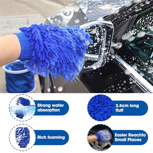 🚗【Car Washing Mitts】The car cleaning mitt is made of double-sided high density soft microfiber chenille fabric, which is soft, thickened, skin friendly and has strong water absorption, the water absorption capacity of the fabric can reach 7 times of its own weight.Just a little soapy water can produce rich foam, which can effectively clean the dirt on the car surface. The mitt perfectly fit the hand shape and can easily reach into small corners such as alloy wheels and rearview mirrors.