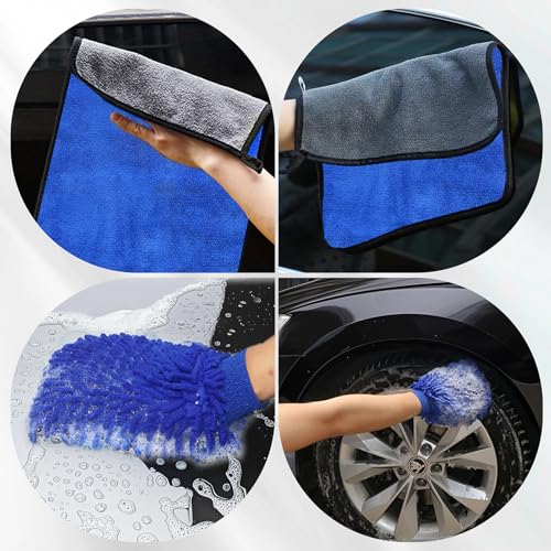 8 Pcs Car Wash Cleaning Kit with 3 Microfibre Cleaning Cloth 2 Microfibre Wash Mitt 600GSM Dual-Sided Ultra Soft Drying Towels and Gloves for Car Washing Polishing Household