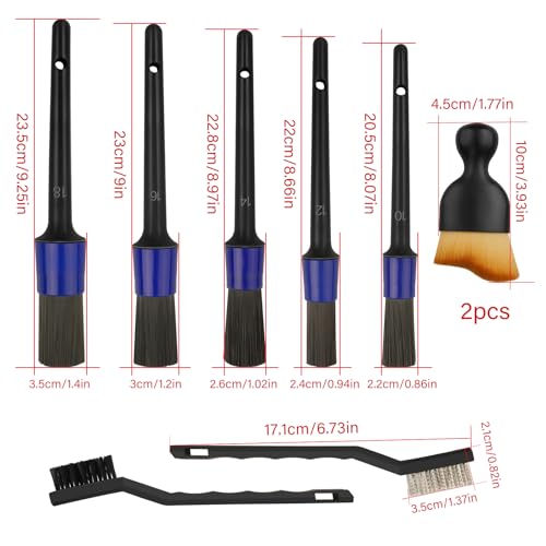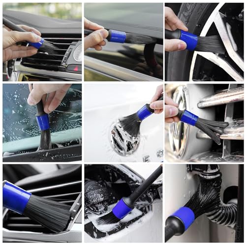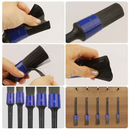 ❤【5 different sizes of detail brushes】:The bristles are made by mixing wild boar hair with synthetic fibers,They are soft, gentle, and do not contain any metal parts, which make them suitable for both dry and wet use. 5 different sizes can be used in different areas. Very suitable for cleaning car wheels, dashboard, wipers, vents, glass, seats, and other small areas.