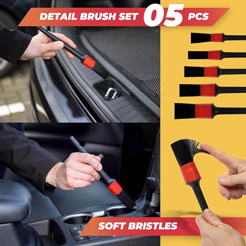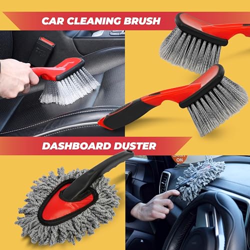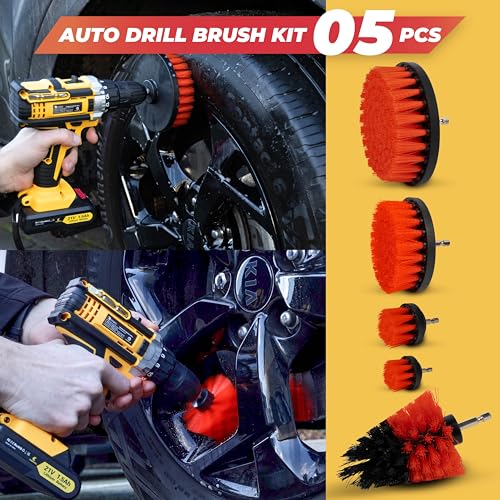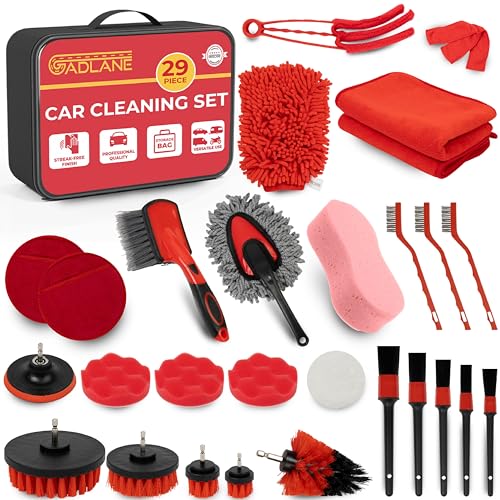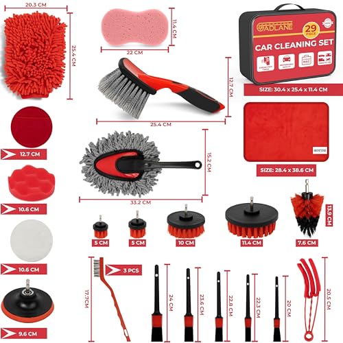 COMPLETE CAR DETAILING KIT – Unleash the power of 29 premium car cleaning products, including 2 microfiber cloths, 5 drill brushes, a tyre brush, and more. This exterior and interior car cleaning kit provides everything you need for a thorough and comprehensive car cleaning experience.