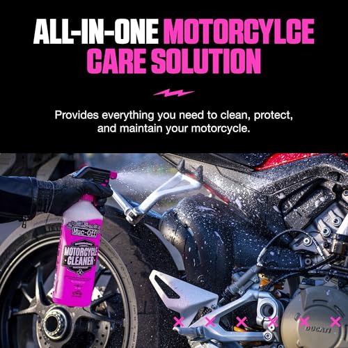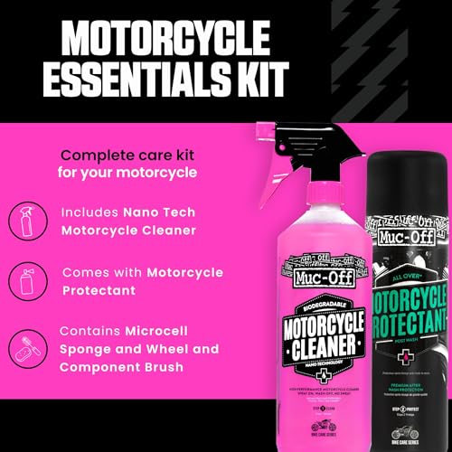 Muc-Off Motorcycle Essentials Kit – Cleaning Bundle with Nano Tech Motorcycle Cleaner, Protectant Spray, Wheel & Component Cleaning Brush, Sponge and Storage Tote