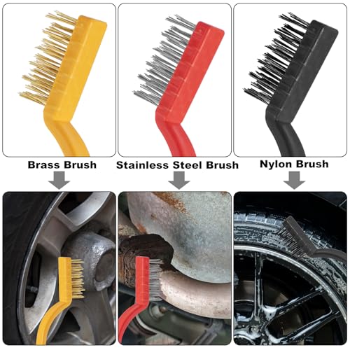 【Steel brush and nylon brush】 Steel brush can be used to remove rust from the engine, wheels, or grille. Nylon brush can remove stubborn stains from car wheels, engine compartment, and tires.