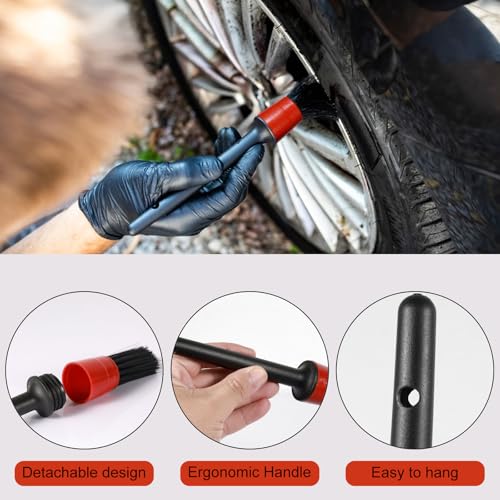 【5 Different Sizes of Detail Brushes】The bristles are made by mixing wild boar hair with synthetic fibers,They are soft, gentle, and do not contain any metal parts, which make them suitable for both dry and wet use. 5 different sizes can be used in different areas. Very suitable for cleaning car wheels, dashboard, wipers, vents, glass, seats, and other small areas.