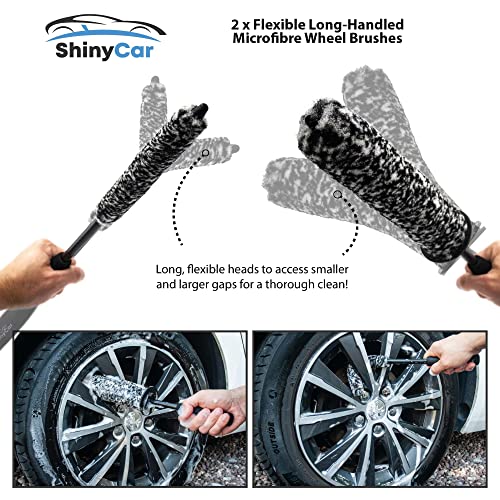 2 x Flexible Long-Handled Microfibre Wheel Brushes – These are soft, plush & fit beautifully into narrow & wide alloy wheel gaps to remove dirt & grime. The heads are bendable to access hard-to-reach areas, including wheel barrels, for a professional deep clean. The ergonomic durable handles are made from non-slip foam material, providing stability when using alongside other wheel cleaning products. After applying other a wheel degreaser, submerge the brush heads into soapy water, then gently scrub between spokes. For optimal results, we’d suggest using a two bucket method (bucket for shampoo & another for plain water) as they’re great at trapping & removing dirt, so should be rinsed.