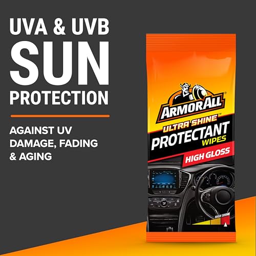 Count on Armor All Protectant Wipes to help renew and revitalize your vehicle’s surfaces and leave a high shine with our easy to use, non-greasy, streak-free formula. Your vehicle is exposed to dirt, grime and harmful elements like UV rays and oxidation every day. Armor All car protectant wipes provide UVA and UVB sun protection to guard your vehicle’s interior vinyl, rubber and plastics against UV damage, fading and aging. These biodegradable, 100% plastic-free car wipes easily clean dirt, dust and debris, restoring the color of surfaces with a beautiful shine that enhances your vehicle’s deep, rich look. The convenient flat pack is ideal for keeping in your car for on-the-go use. Wipe your car’s interior surfaces with Armor All Protectant Wipes as needed to maintain protection and shine. In addition to car protectant wipes, Armor All makes multipurpose cleaner and other car care products and car cleaning products. Give your vehicle the finish it deserves with Armor All.