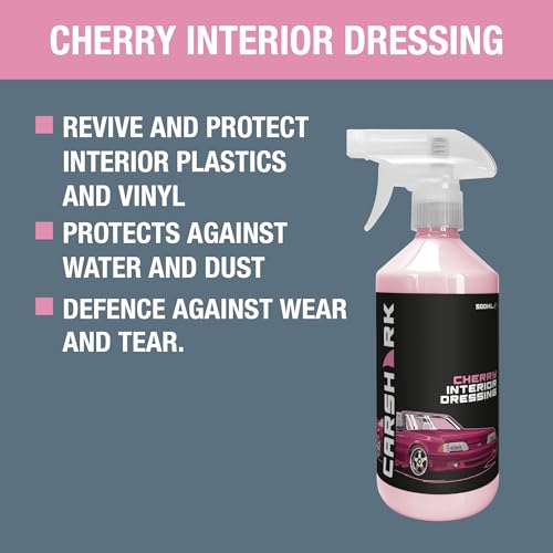 Revive and protect the interior plastics and vinyl of your vehicle with our Cherry Interior Dressing. This versatile product provides a brilliant, long-lasting shine while defending against wear and tear. Simply shake the bottle well before use, then spray directly onto the surface you wish to clean. Wipe with a clean, dry microfibre cloth to reveal a fresh, cherry-scented interior. Please note that this product should not be used on leather surfaces. Follow the instructions carefully for best results and to maintain the pristine condition of your vehicle’s interior. With its convenient spray application and protective properties, our Cherry Interior Dressing is an essential addition to your car care routine.