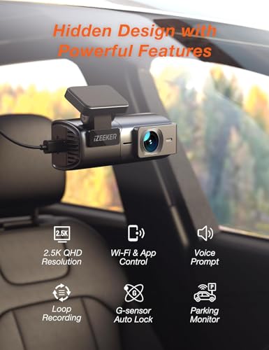 iZEEKER 1440P Dash Cam with WiFi, 2.5K QHD Dashcam, Mini Dash Camera with WDR, G-Sensor Emergency Recording, Loop Recording, 24H Parking Mode Supports, Voice Prompt