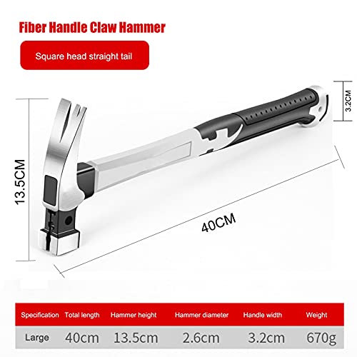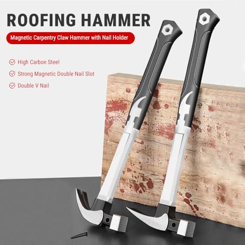Claw Hammer with Magnetic Nail Holder, Square Head Framing Hammer with Anti-Slip Handle, Roofing Hammers for Carpentry Woodworking, Home Improvement, Emergency