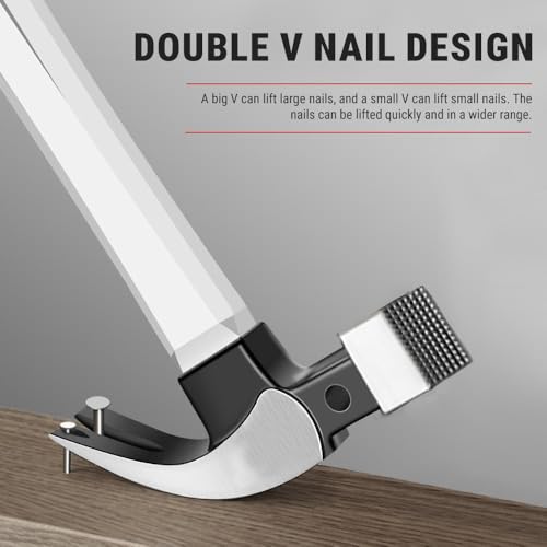 🔨SQUARE HEAD DESIGN: The 13oz anti shock hammer comes with a square head design makes the hammer easier to aim at the target, which increases accuracy and efficiency for hammering and nailing in woodworking.