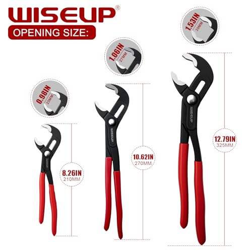 WISEUP 3-Piece Groove Joint Pliers Set – Fast Adjustable 7 & 10 & 12 Inch Water Pumper with Smooth Jaw – Tongue and Groove Wrench for Channel Home Repair, Gripping Nuts, Bolts, Pipe (7+10+12 inch)