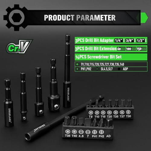 ALL IN ONE SOLUTION: set contains 15pcs 65mm magnetic nut drivers (6-14mm & 1/4″-9/16″), 20pcs 48mm magnetic nut drivers (5-13mm & 3/16″-1/2″), 3pcs drill bit adapter, 3pcs drill bit extensions and 14pcs screwdriver bit set