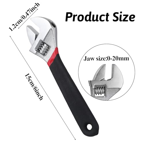 6″/150mm Adjustable Wrench, Small Metric Scales Adjustable Spanner Max Opening 20mm Wide Jaw Wrench with Rubber Anti-Slip Grip High Carbon Steel Rust Resistant Spanner