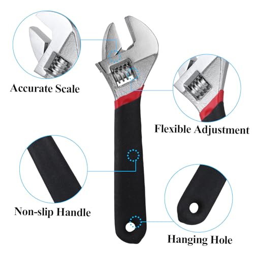 【Comfortable and Non-slip Handle】This adjustable wrench is designed with a plastic dipped handle that provides a comfortable and secure grip. The non-slip design ensures a firm grip, allowing you to operate confidently and safely.