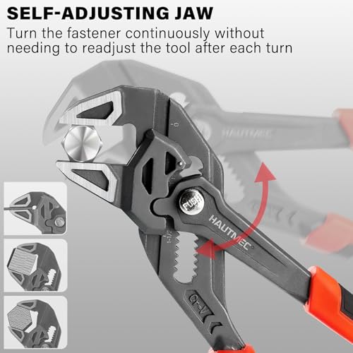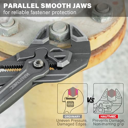 HAUTMEC Adjustable Pliers Wrench,180mm Smooth Jaw Parallel Pliers, Adjustable Spanner, CR-V Steel & Phosphated Rust-Resistant, SAE/Metric Scale, Storage Belt Pouch for Professional Plumbing & DIY