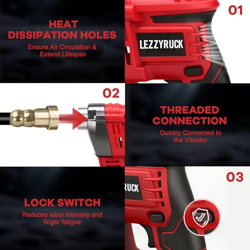 Lightweight, Compact & User-Friendly Design: This electric concrete vibrator is compact, easy to grip, and reduces fatigue during long projects. The lock-on switch allows for continuous use without holding the trigger, enhancing efficiency on any job site