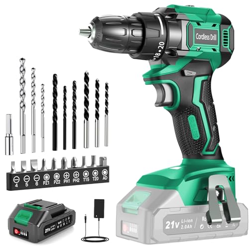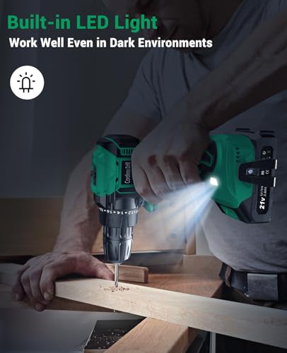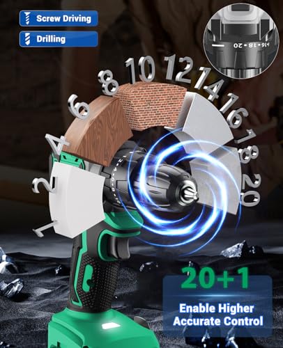 Cordless Drill Brushless, FEBOGER Electric Drills Set 21V with 2000mAh Battery, Power Drill 45N.m Max, 20+1 Torque, 2 Speed, LED Light, 20pcs Drills Set for Home, Garden DIY, Green