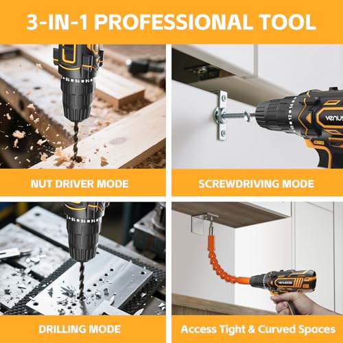 Compact & Easy to Use:Ideal for home improvements, these hand drills cordless are easy to handle. The battery drill cordless rechargeable design allows easy work with wood, metal, and plastic — perfect for furniture assembly and renovations