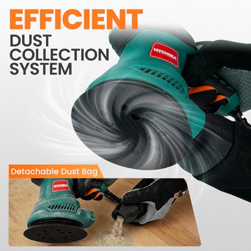 HYCHIKA 300W Orbital Sander, 6 Speed 6000-13000 OPM Electric Sander with 12pcs 125mm Sanding Discs, with Dust Collector