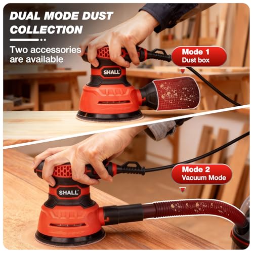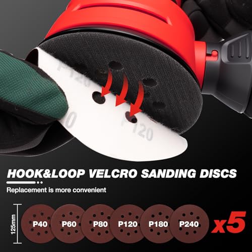 [Convenient Accessories] Our sander comes with 30 sheets of 5-inch (125mm) sandpaper, including 5 sheets each of 40, 60, 80, 120, 180, and 240 grit, meeting your different sanding needs. Our SHALL store also provides matching 125mm round abrasive, so you don’t have to worry about restocking the included round abrasive.