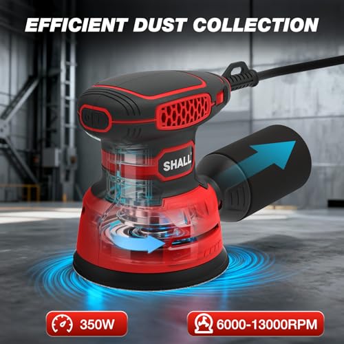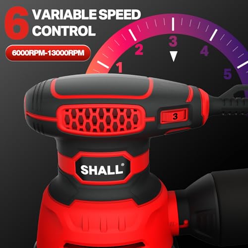 SHALL Random Orbital Sander 350W,with 30 Pcs Sandpapers, 6 Variable Speed 13000RPM, 125MM Hand Electric Tool, Dust Removal Function,Suitable for Sanding, polishing, and Woodworking.