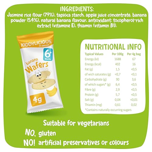 Kiddylicious Banana Mini Wafers – Gluten and Dairy Free Kids Snack – Suitable for 6+ Months – 6 x 4 Twin Packs