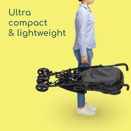 ONE HAND FOLD PUSHCHAIR: easily fold the compact stroller (L43 x W29 x H106 cm) with simply one hand; its folding system design makes it ideal to take with you, and it also offers a handy carry strap that makes carrying easier