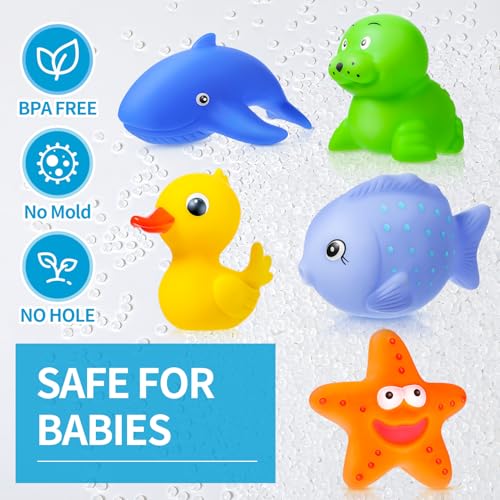 【Hole free bath animal toys】Our mold free bath toys are 100% safe for young children as they are designed with a non-porous seal that completely seals each toy using a food grade epoxy adhesive to ensure there is no water or mould inside the holeless bath toy.