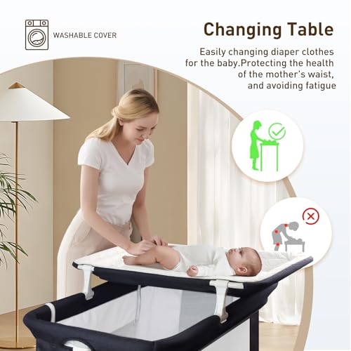 4 in 1 Convertible Mode: This baby bedside crib is equipped with 4 convertible modes, the next to me crib can be used as a standalone baby crib with mosquito net, baby cribs for newborn attached to the adult bed, baby bassinet and baby diaper changing table. Mother can change the mode freely to meet your different needs. Uuoeebb black bedside crib will be the best helper or you to look after your baby