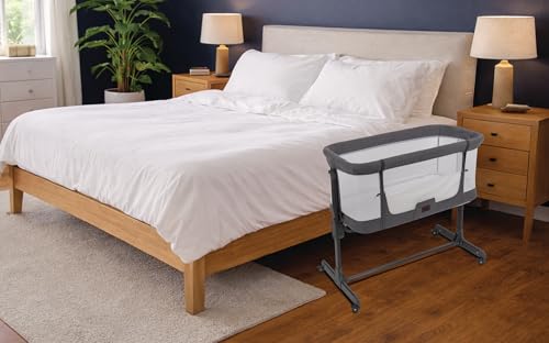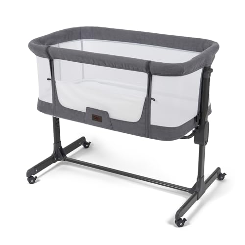 BABYLO Aurora 2-in-1 Co Sleeper, Bedside Crib & Standalone Baby Cot with mattress, 0 – 6 months (9kg), Grey