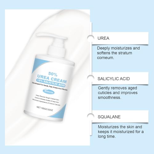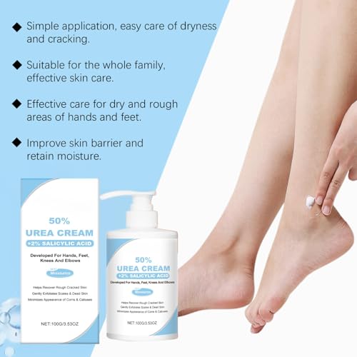 【Treatment for Feet】Uncomfortable shoes, a fast paced life and sports, which make your heels crack and dry. With the Urea 50% Foot Cream you can have soft feet in the easiest and quickest way possible.The perfect formula of the cream will deeply moisturize and soften your feet so you can have incredibly smooth heels and get the relief you need from the pain and hassle of calluses.