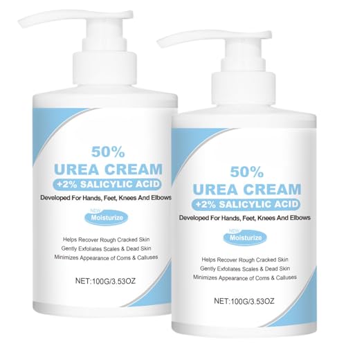 2Pcs Urea Cream 50 Percent Plus 2% Salicylic Acid,Urea Foot Cream for Cracked Heels and Dry Skin,Urea Lotion for Deep Moisturizing,Callus Remover and Soften,Maximum Strength for Body Care