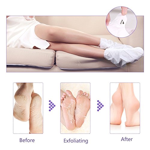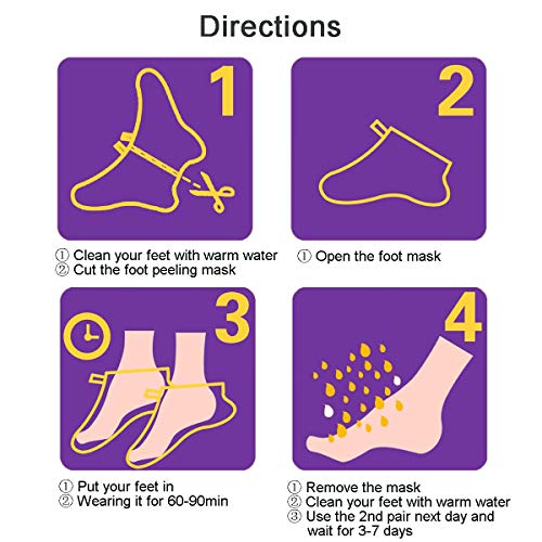 ①Miracle Solution for Dry, Coarse, Callused Feet – Our foot peel mask is extremely effective at exfoliating and peeling away rough and dead skin to unveil brand new baby soft feet in 3-7 days! 【Note: Because of our improved formulation foot mask exfoliating too soft, then please used up 2 pairs to see results, thank you】