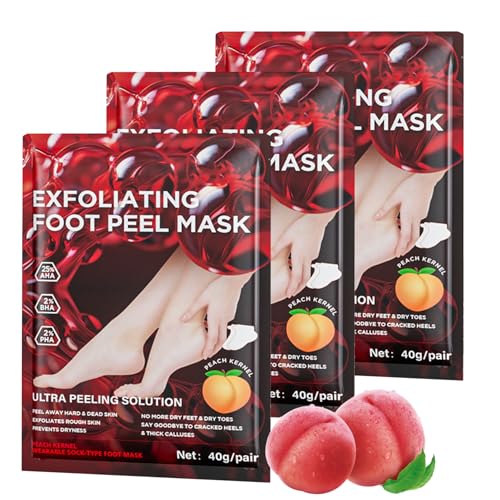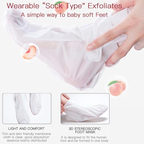 Exfoliating Foot Peel Mask – 3 Pair Foot Mask Socks – Moisturising Peach Moisturising Foot Socks with Aha,Bha & Pha – Removes Dead Skin & Calluses, Repairs Rough Heels & Soft, Smooth Baby Feet
