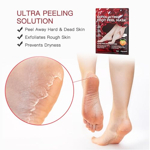 【Gentle Yet Effective Formula】The foot peel mask for hard skin Infused with natural peach extract, collagen and nourishing botanicals, it softens aged keratin layers, refines foot texture and restores baby-soft skin without causing harsh irritation.