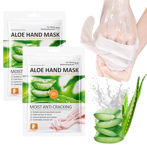 2 Pairs Aloe Hand Mask Gloves – Moisturising Gloves for Dry Cracked Hands – Hydrating with Botanical Extracts for Comfortable Soft Skin Care After Washing or Before Bed (Aloe Vera (2 Pack))