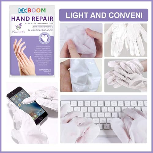 5 Pairs Hands Moisturizing Gloves, Hand Skin Repair Renew Mask w/Infused Collagen, Moisture Enhancing Gloves for Dry, Aging, Cracked Hands (Classi)