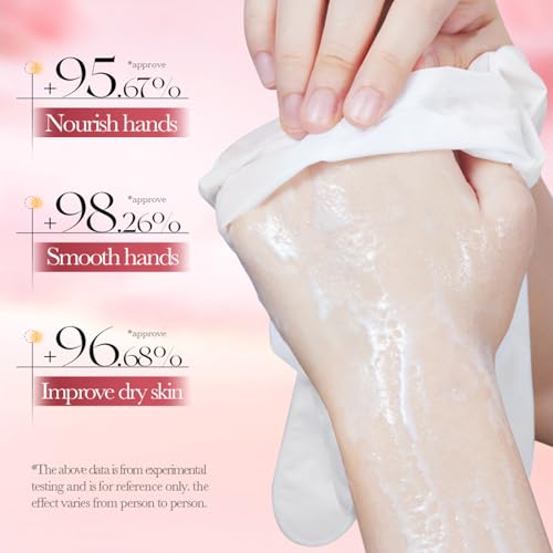 【Natural & Safe Formula】:Our hand mask gloves are made with high quality natural ingredients, enriched with Strawberry, Peach and Coconut Serum, collagen and more. While gently cleansing pores, they provide essential nutrients for healthier hands