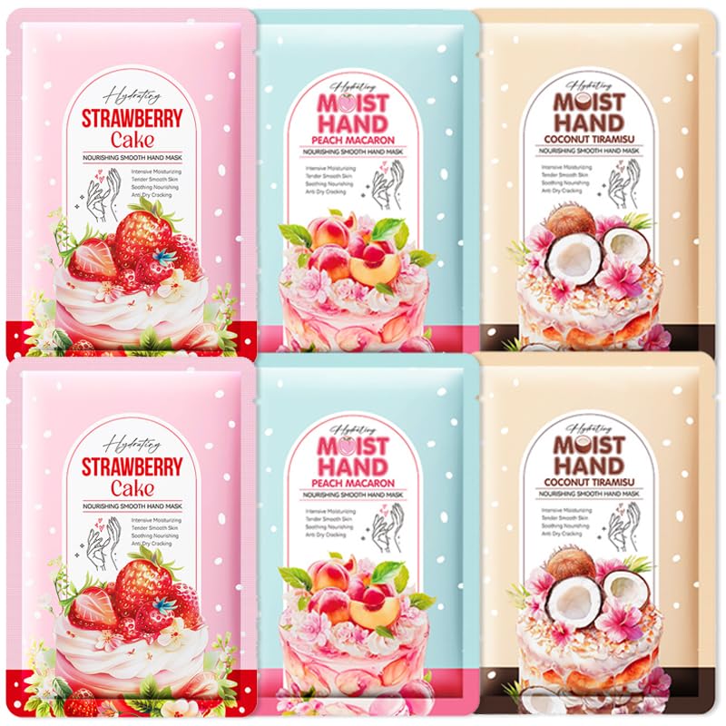 6PCS Fruits Hand Mask Gloves – Moisturising Gloves for Dry Hands – Nourishing Hand Moisturiser gloves – hand Masks with Strawberry, Peach, Coconut Extract for Softening Dead Skin, Whitening Hand Care