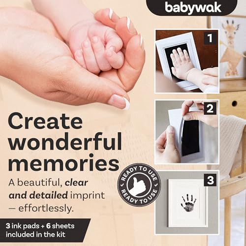 EASY, QUICK AND MESS-FREE – Capture perfect hand and footprints in seconds, even if your baby moves. Each kit includes 3 ink pads and 6 high-quality cards, so you can try multiple times or make several keepsakes. No cleaning, no stains – just perfect prints every time.