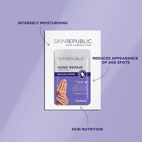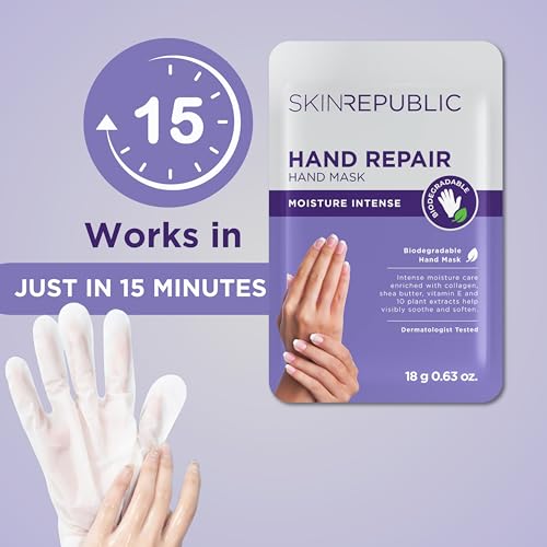 Skin Republic Hand Repair Mask | Moisturizing Gloves | With Collagen, Shea Butter & Vitamin E | For Dry, Rough Hands | Leaves skin soft, smooth & youthful (1 pair)