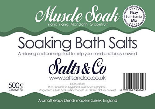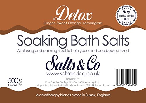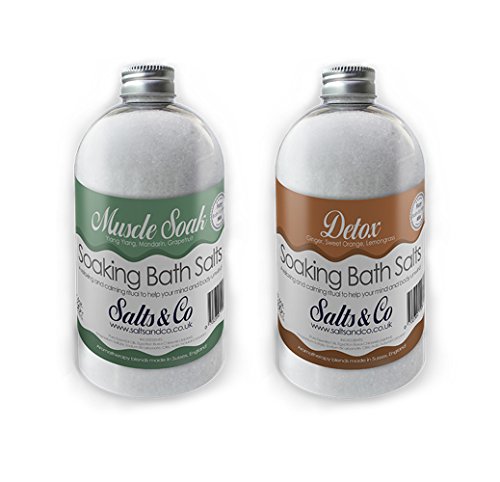2 Bottles of Bath Salts – Muscle Soak & Detox – Ylang Ylang, Mandarin, Grapefruit, Ginger, Sweet Orange & Lemongrass Essential Oils – Salts & Co Aromatherapy Epsom Salts – 2x500g