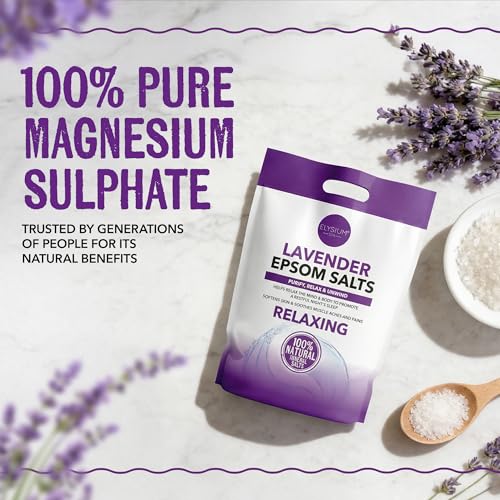 Elysium Spa Lavender Epsom Salts – 100% Natural Mineral Salts | Soothing & Relaxing Soak, Softens Skin & Soothes Muscle Aches & Pains (2Kg)