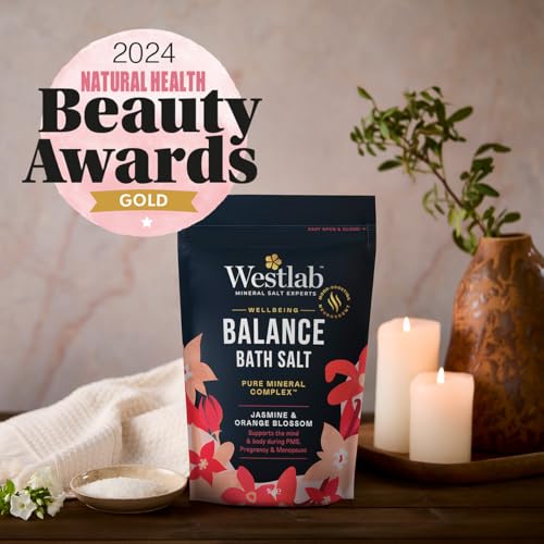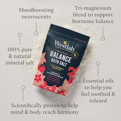 Westlab Balance Bath Salts for PMS, Pregnancy and Menopause. Scientifically-proven to help mind and body reach harmony. With Magnesium and Mood-Boosting Neuroscent. 100% Natural Ingredients, with organic Jasmine & Orange Blossom.