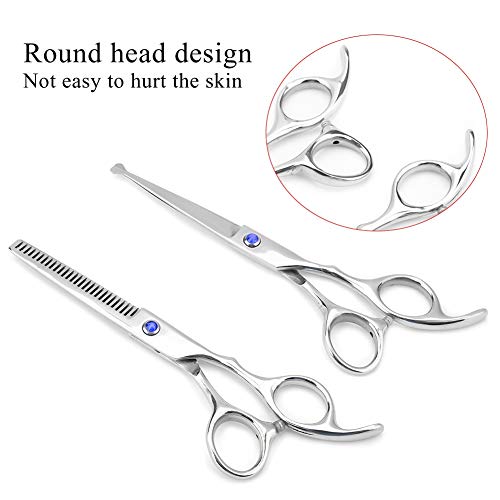 Professional Hair Cutting Thining Scissors Set Round Head Shears Baby Hairdressing Scissors Set for Baby Kids (Blue)