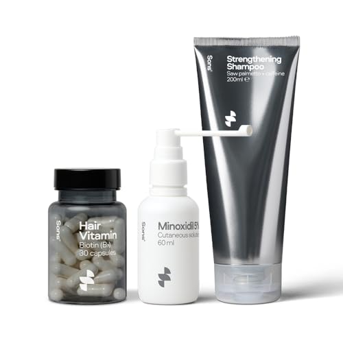 Sons Complete Hair Loss Treatment for Men. Minoxidil 5% for Hair Regrowth, Vegan Biotin for Hair, DHT Blocking & Thickening Shampoo with Citrus Scent. 1 Month Supply. Made in Europe.