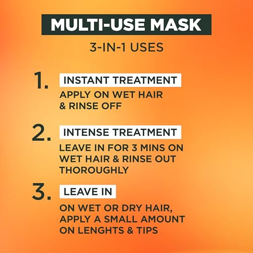 Garnier Hair Food 3-in-1 Hair Treatment Mask, Intensely Nourishes and Repairs Hair, For Damaged Hair, No Silicones, Vegan Formula, Papaya, Ultimate Blends, 400ml