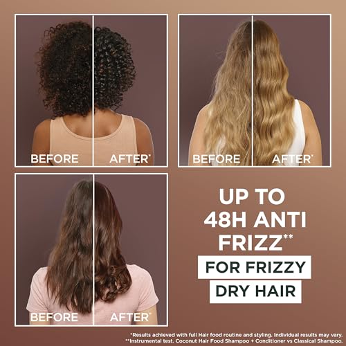 Garnier Hair Food 3-in-1 Hair Treatment Mask, Smooths and Nourishes, For Frizzy & Curly Hair, No Silicones, Vegan Formula, Coconut and Macadamia, Ultimate Blends, 400ml